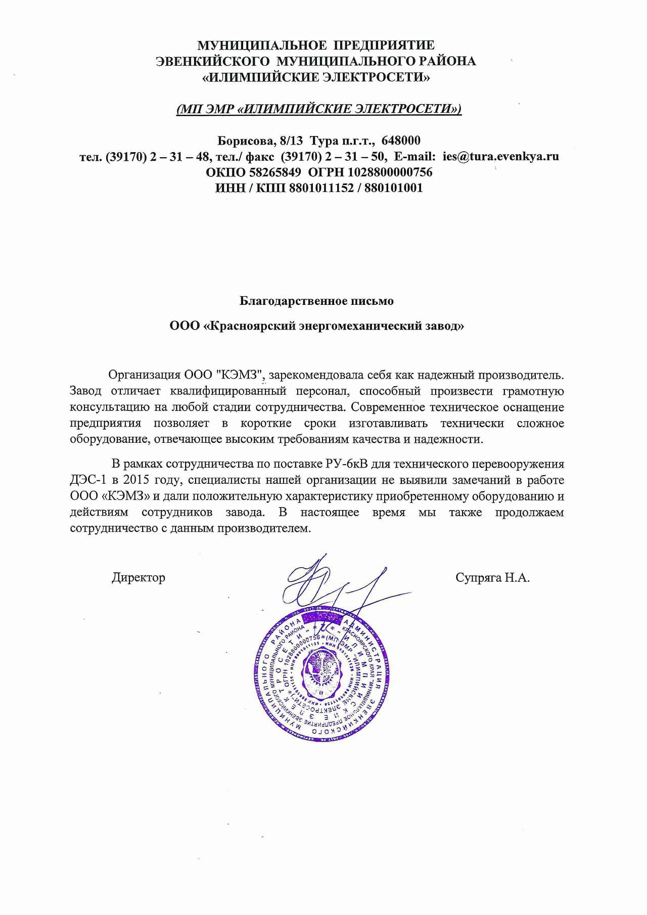 МП ЭМР Илимпийские электросети