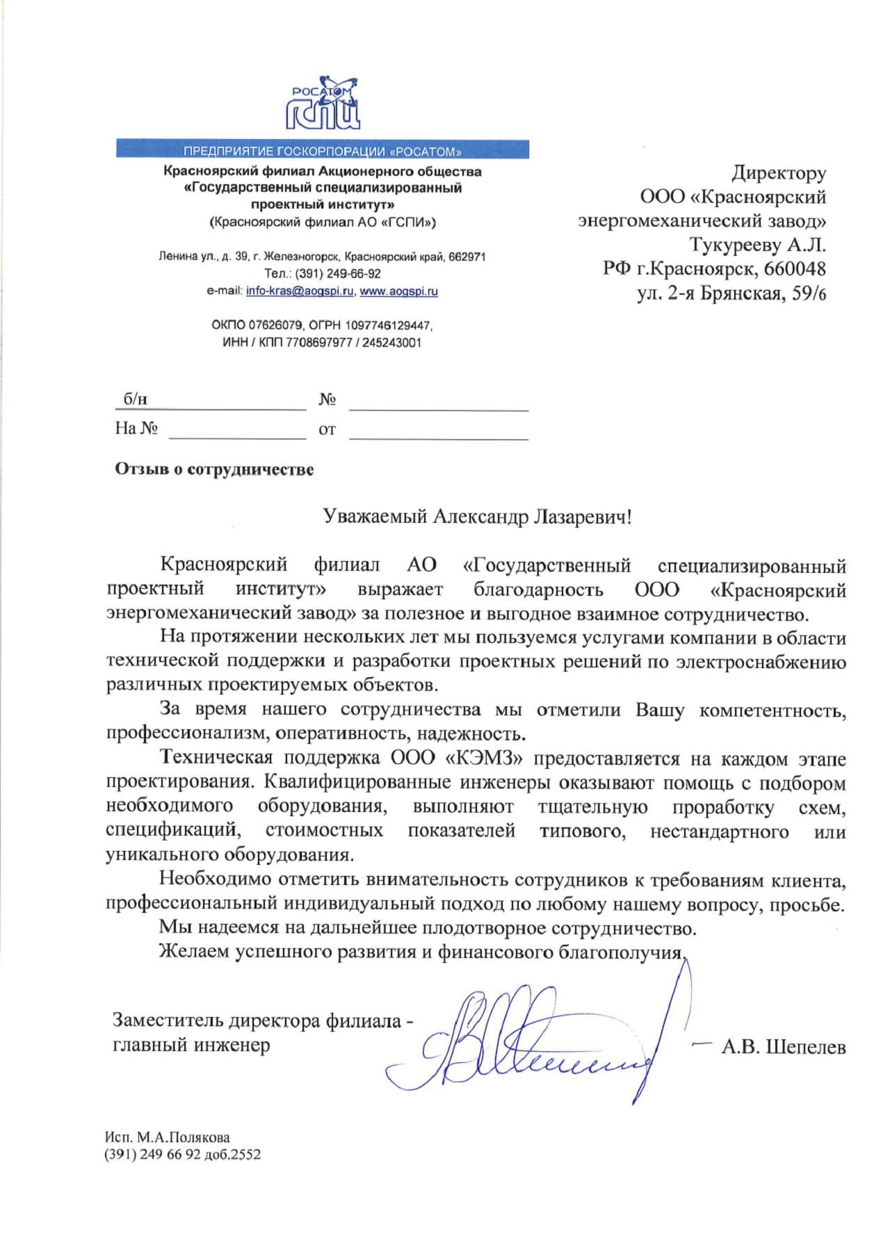 Красноярский филиал АО ГСПИ