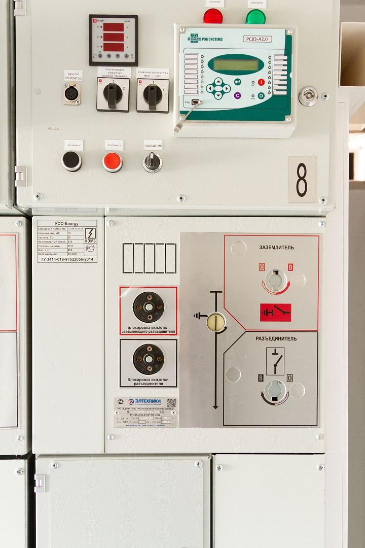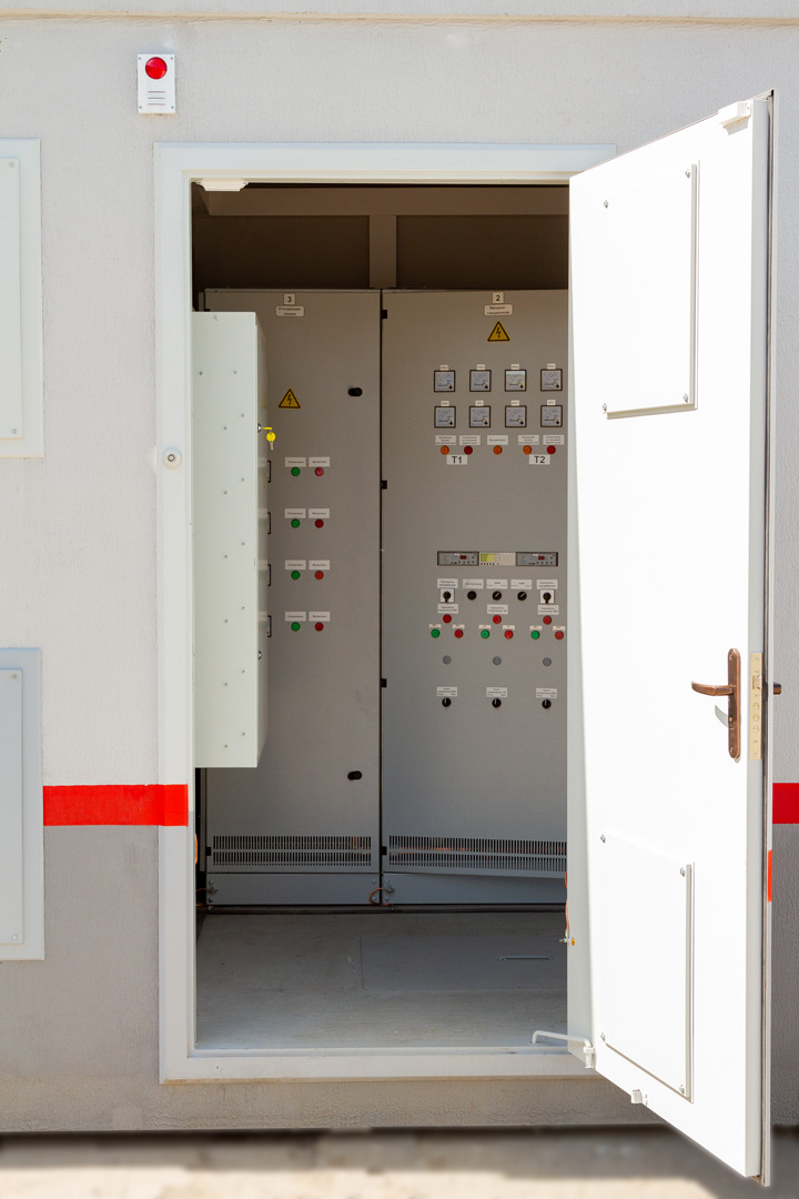 Распределительное устройство низкого напряжения состоит из панелей НКУ Solution. Высокая сторона - из камер сборных одностороннего обслуживания нового образца типа КСО-Energy.