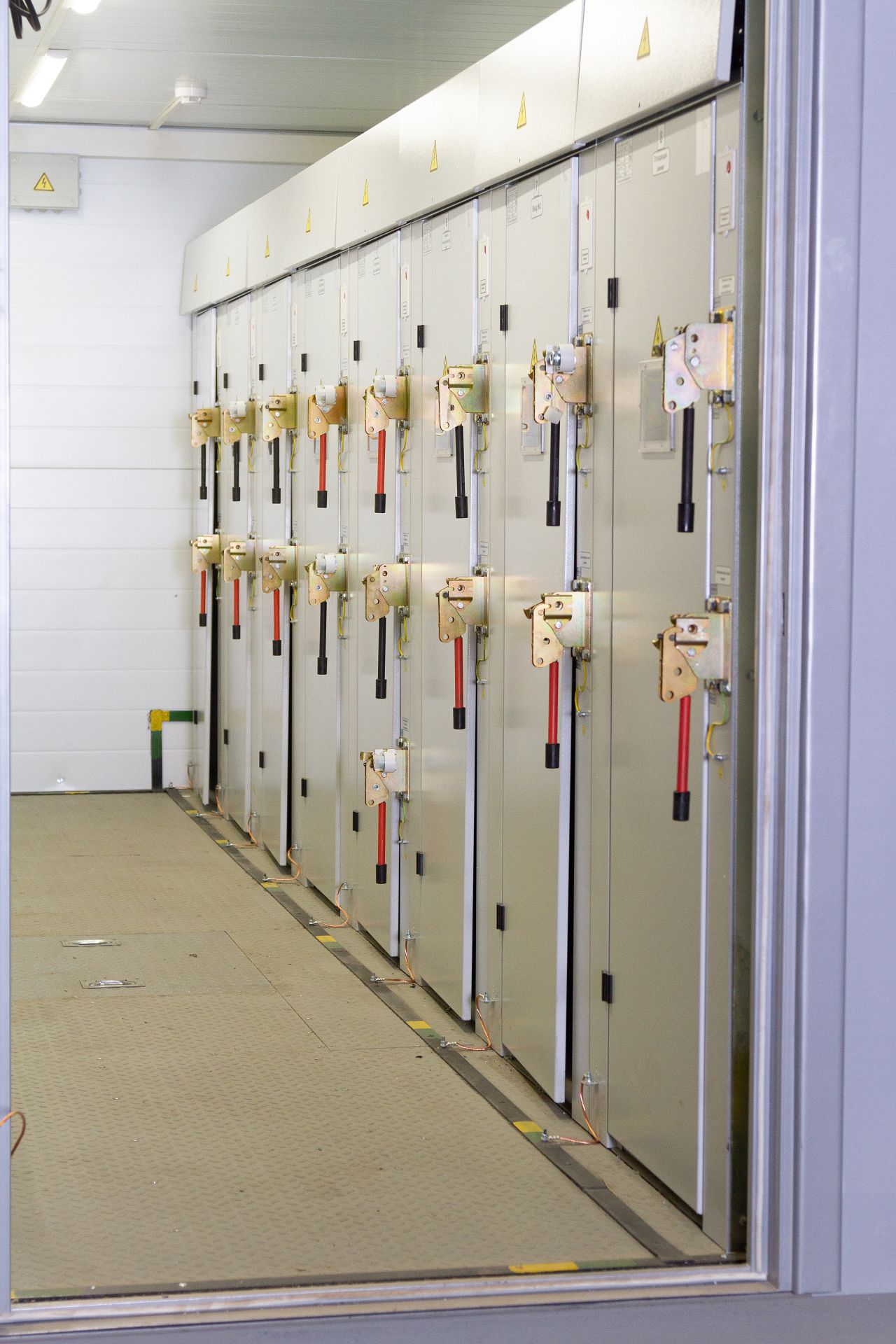 Распределительное устройство низкого напряжения состоит из панелей ЩО70, высокая сторона из камер сборных одностороннего обслуживания КСО-393М.
